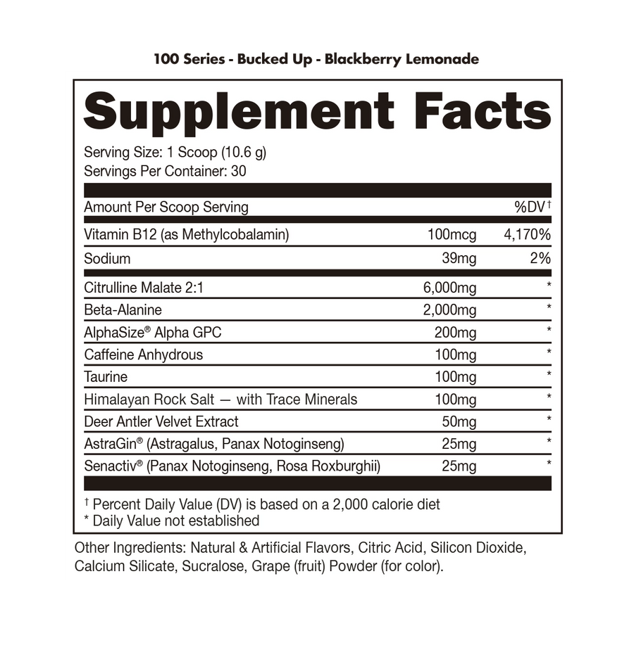Bucked Up 100 Series Pre Workout Highlights: The perfect solution for the stim-sensitive, who still want a sufficient energy boost.