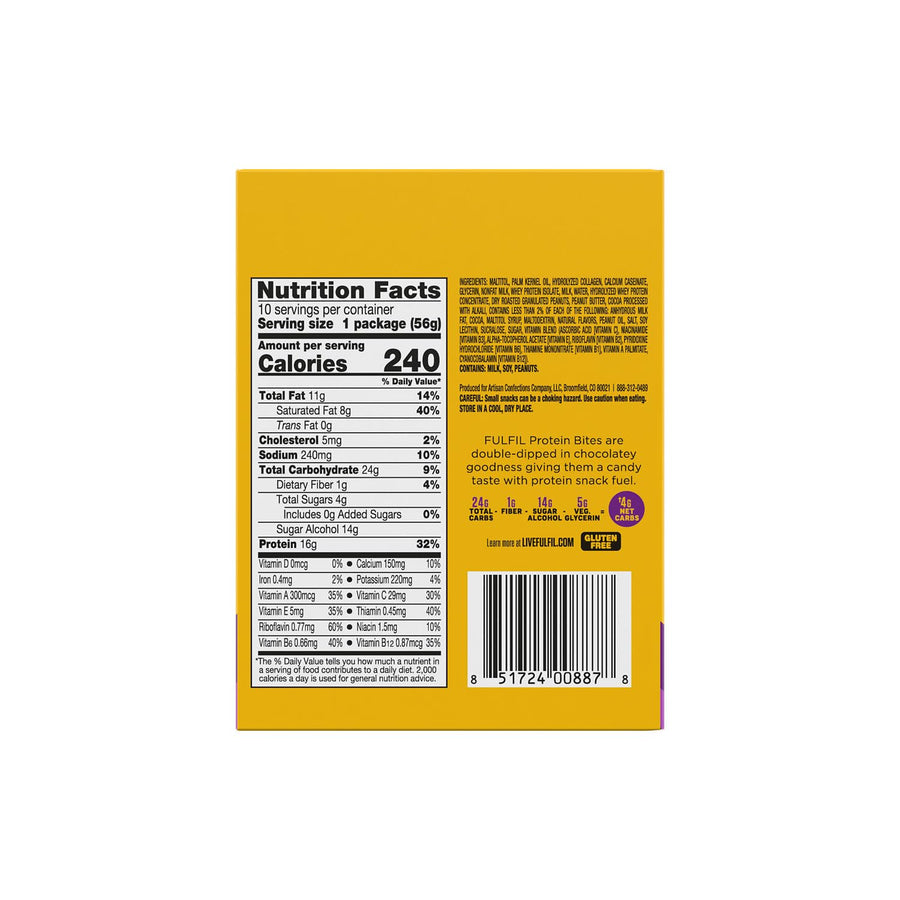 FULFIL Protein Bites Highlights: Indulge in the rich, creamy goodness of FULFIL Chocolate Salted Caramel Protein Bites. With 16 grams of protein, only 3 grams of sugar, and 4 grams of net carbs, these gluten-free bites are perfect for satisfying cravings without the guilt. Whether you're at home, at the office, or on the go, enjoy a delicious blend of salted caramel and chocolate that’s sure to please. Keep a bag handy for whenever hunger strikes — just be prepared to share!