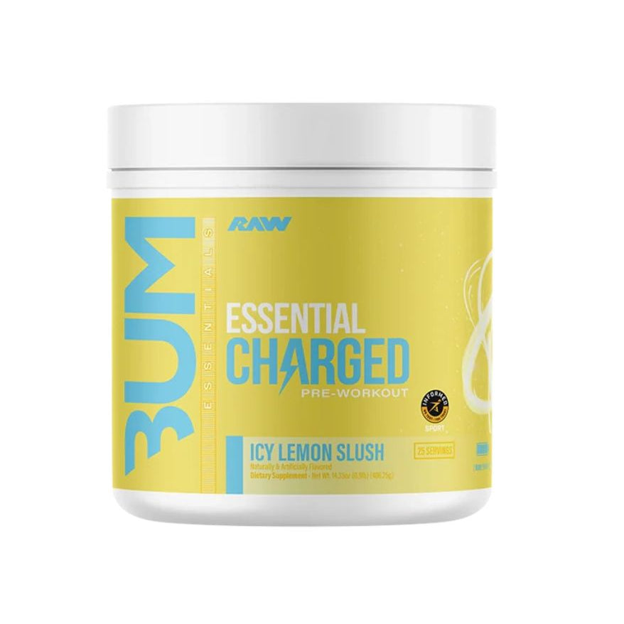 Get Raw Nutrition BUM Essential Charged Pre-Workout Highlights: Introducing Essential Charged, the ultimate pre-workout formula designed to supercharge your training sessions. With a potent blend of performance-enhancing ingredients, Essential Charged offers an unparalleled boost to your workouts.