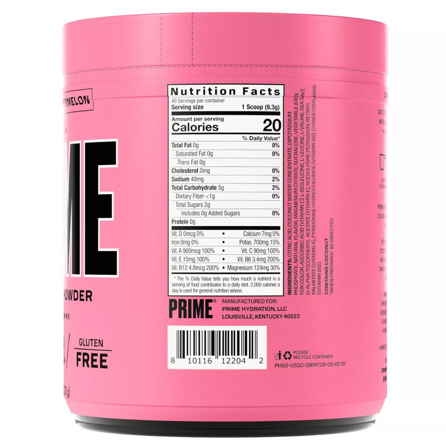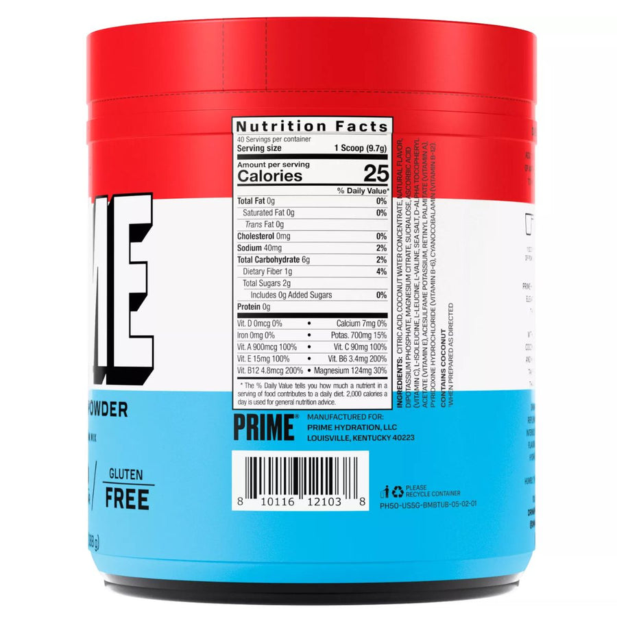 PRIME Hydration Power Tub Highlights: PRIME Hydration Powders enhance post-workout recovery by combining coconut water, BCAAs, and other beneficial ingredients. Each scoop goes beyond ordinary hydration, offering rapid replenishment and delightful, refreshing flavors. Trust us with your hydration needs. Join the prime team.