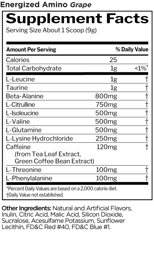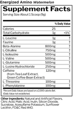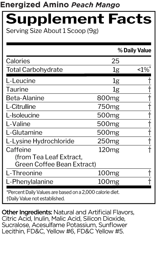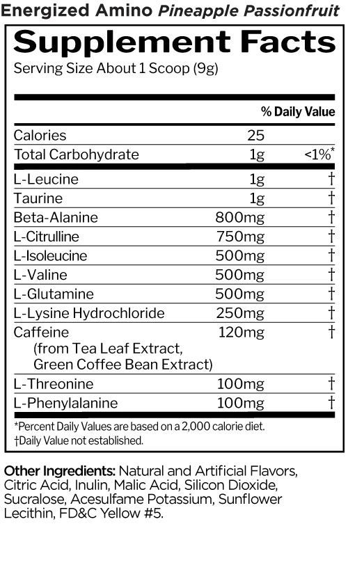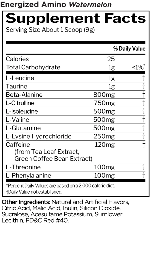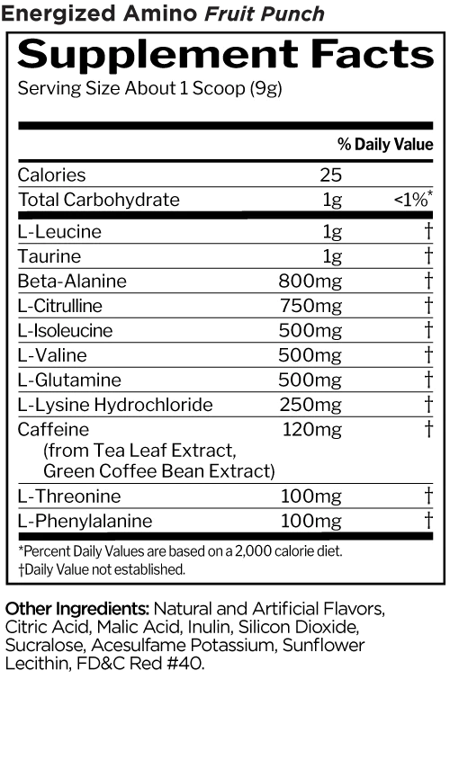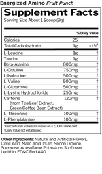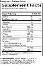 R1 Energized Amino Highlights: Available in a variety of refreshing fruit flavors, each serving delivers a 5.5g amino acid blend and about as much caffeine as a cup of strong coffee.